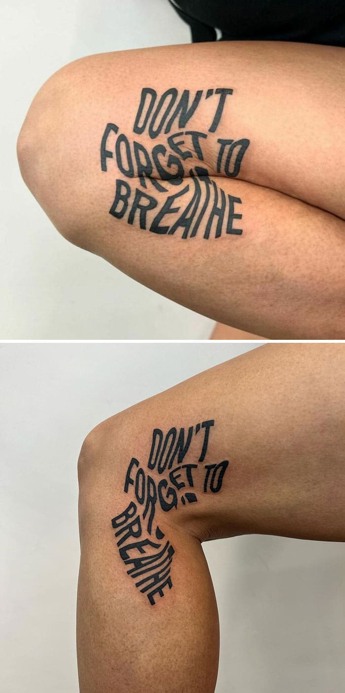 The “Softness” elbow tattoo is poetic. It literally compresses and expands, just like the concept itself. And the knee tattoo about time being an illusion? That is meta. It uses the physical distortion of the skin to prove the philosophical point. It is smart, it is clean, and it is undeniably cool.