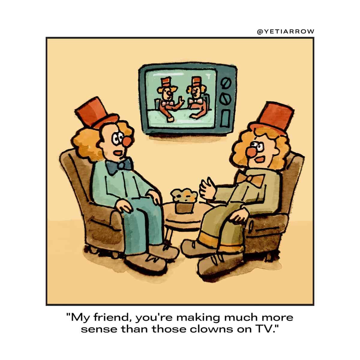I grew up doodling in the margins and timing punchlines to the school bell, so single panel comics feel like home. One frame, one twist, and you’re laughing before your brain finds the brakes. YetiArrow nails that sweet spot where cute lines meet feral ideas. It’s precision cartoon humor—clean silhouettes, economy of words, and a reveal that arrives exactly one beat sooner than you expect.