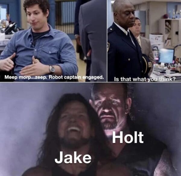 Andre Braugher was a force to be reckoned with. His Captain Holt is a masterpiece of minimalism, a Picasso of poker faces. The man could probably play hide and seek with himself and forget he’s even playing. So, here’s to you, Andre Braugher, for proving that in a world of chaos and laughter, there’s always room for a stern, unamused gaze. In tribute, enjoy these 23 Captain Holt memes and Brooklyn 99 memes that are some of my favourites!