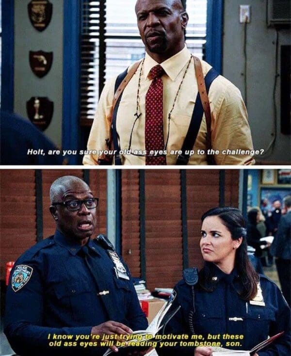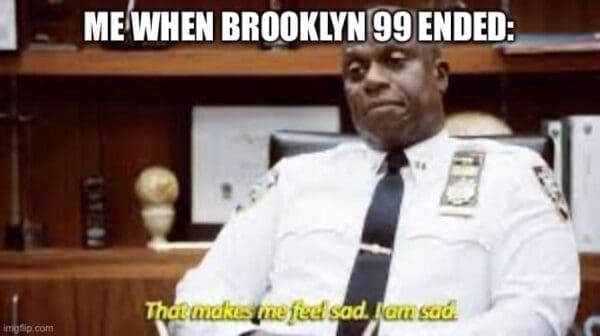 Now, let’s talk about those Captain Holt memes. The internet loves a good meme, especially when it involves someone as lively as Andre Braugher. I can’t get enough of those images featuring his dead-eyed stare and the caption, “I’m not mad; I’m just disappointed.” Really, Andre? Because most people would be in therapy for years if they encountered your level of disappointment. It’s a meme, not a therapy session, but hey, whatever helps you cope with the crippling disappointment of the human condition. And then there’s “Brooklyn Nine-Nine,” a show that managed to turn police work into a hilarious sitcom, proving that even the most serious professions can be fodder for laughter. It’s almost as if they were trying to teach us that life’s absurdity is the only thing keeping us from spiraling into existential despair. Thanks for the enlightenment, Captain Holt.