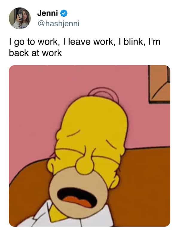 Tweet by @BushLeagueBlake about finally understanding Blink-182’s “work sucks” lyric