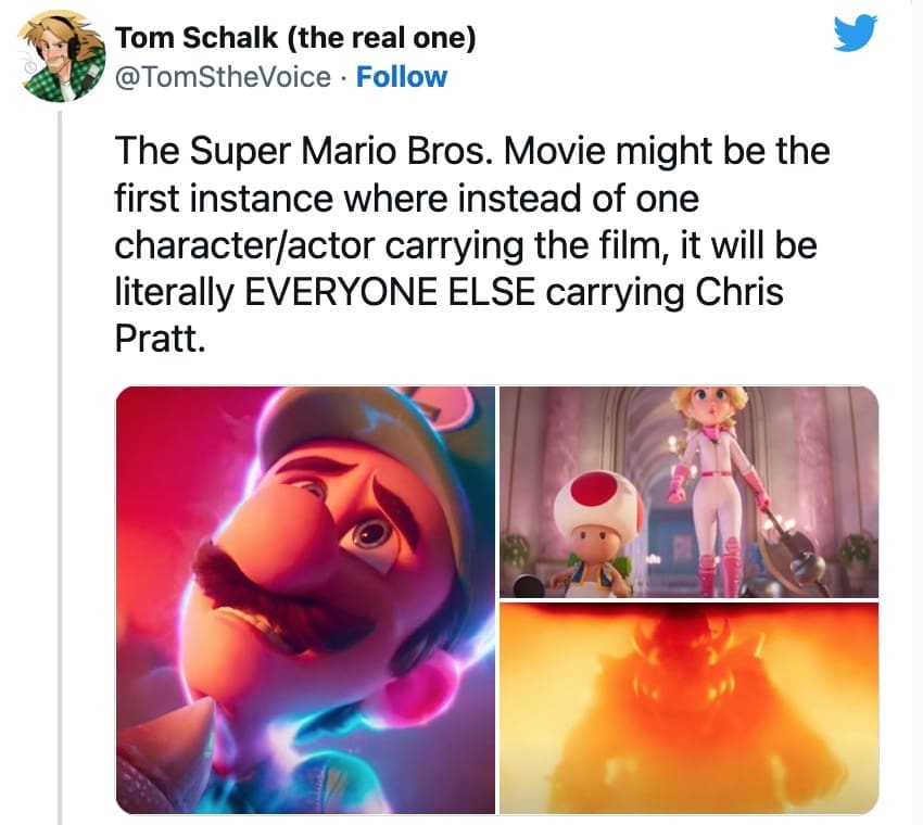 I honestly do get some of the reaction. I don’t think I’m alone in wishing that the studio had gone with the classic Charles Martinet to voice Mario. Yes, it would have been dope, but I get why all animated movies need the big names these days.